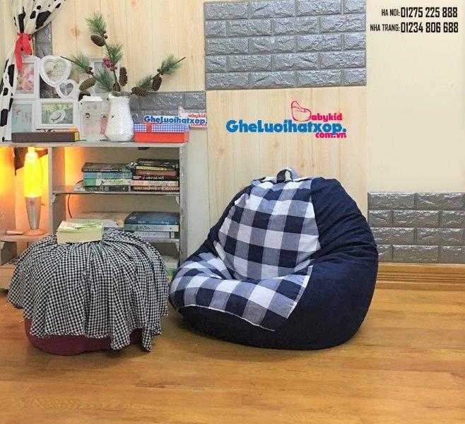Ghế lười dáng lê họa tiết caro tím than GL L145 [S]